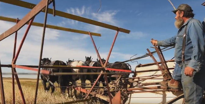 Ein sehr interessanter Beitrag zu den Arbeiten mit Pferden im Haferfeld in der Nähe von Grande Prairie in Alberta wie sie heute noch praktiziert werden.